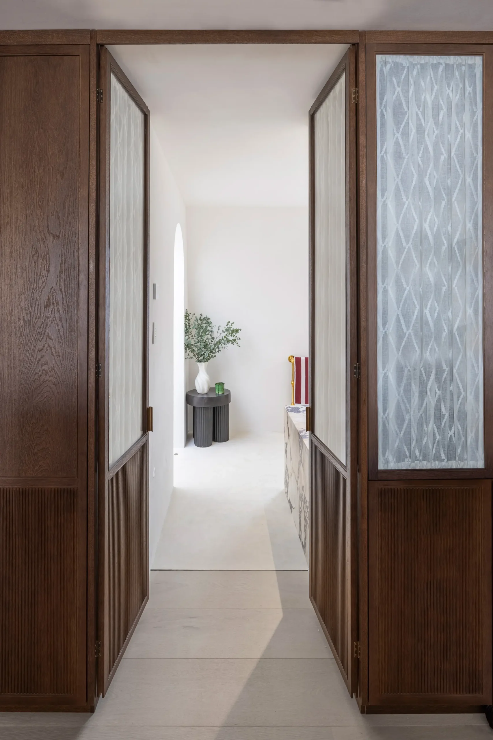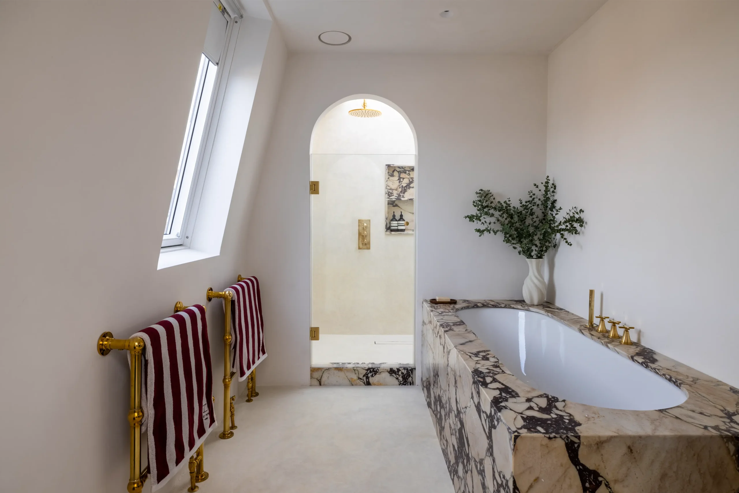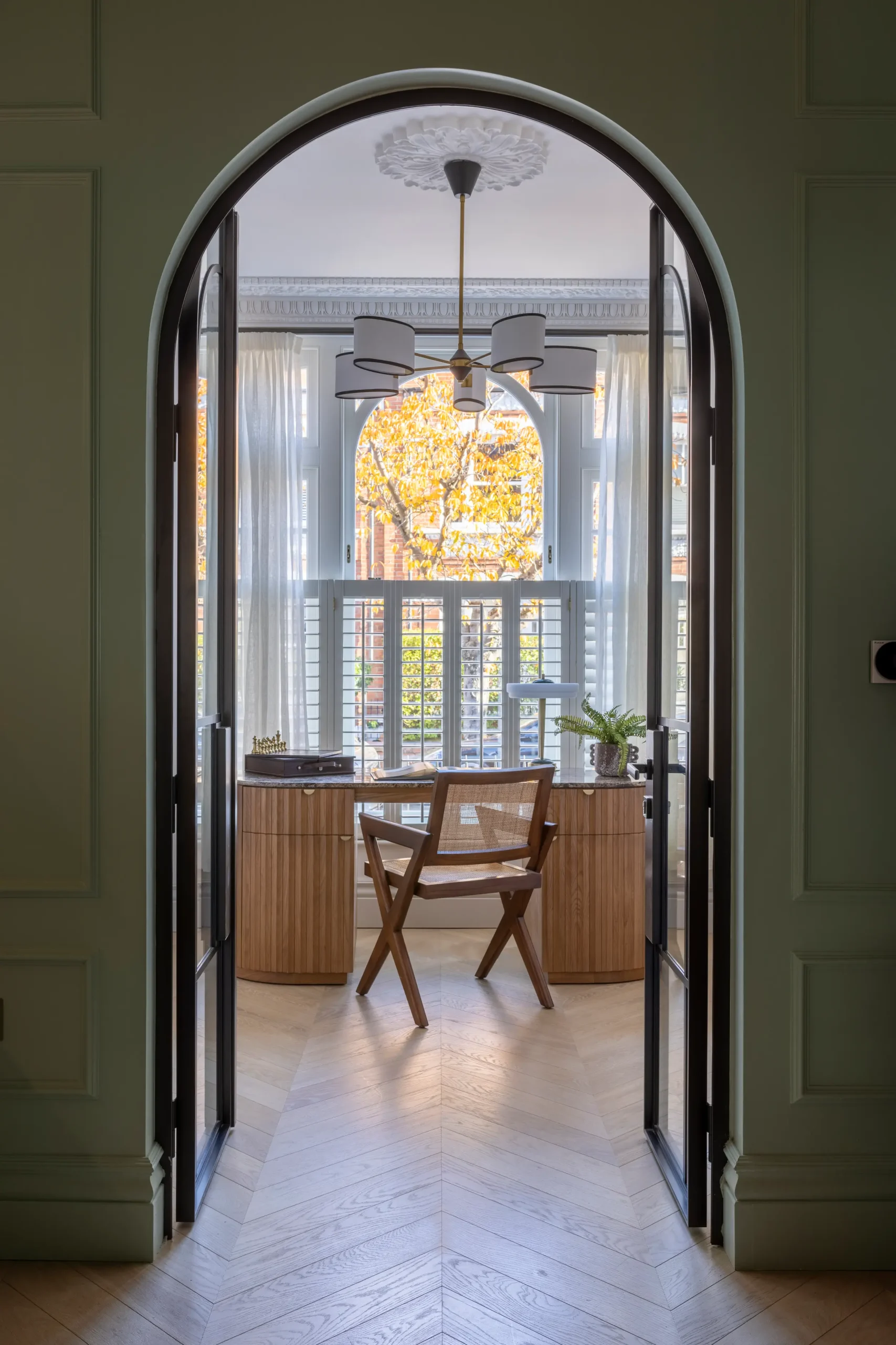 Internal glazing optimises the flow of natural light, creating a bright and airy atmosphere while maintaining distinct zones within the home. The ground floor prioritises family-friendly practicality without compromising on design, while the penthouse suite, complete with a west-facing roof terrace, provides a serene retreat. Bespoke joinery throughout integrates cutting-edge amenities, including discreet air conditioning, Lutron lighting, smart home automation, and a state-of-the-art AV system. The result is a sophisticated, highly functional home that harmonises heritage and innovation, offering exceptional spaces for relaxation and entertainment.