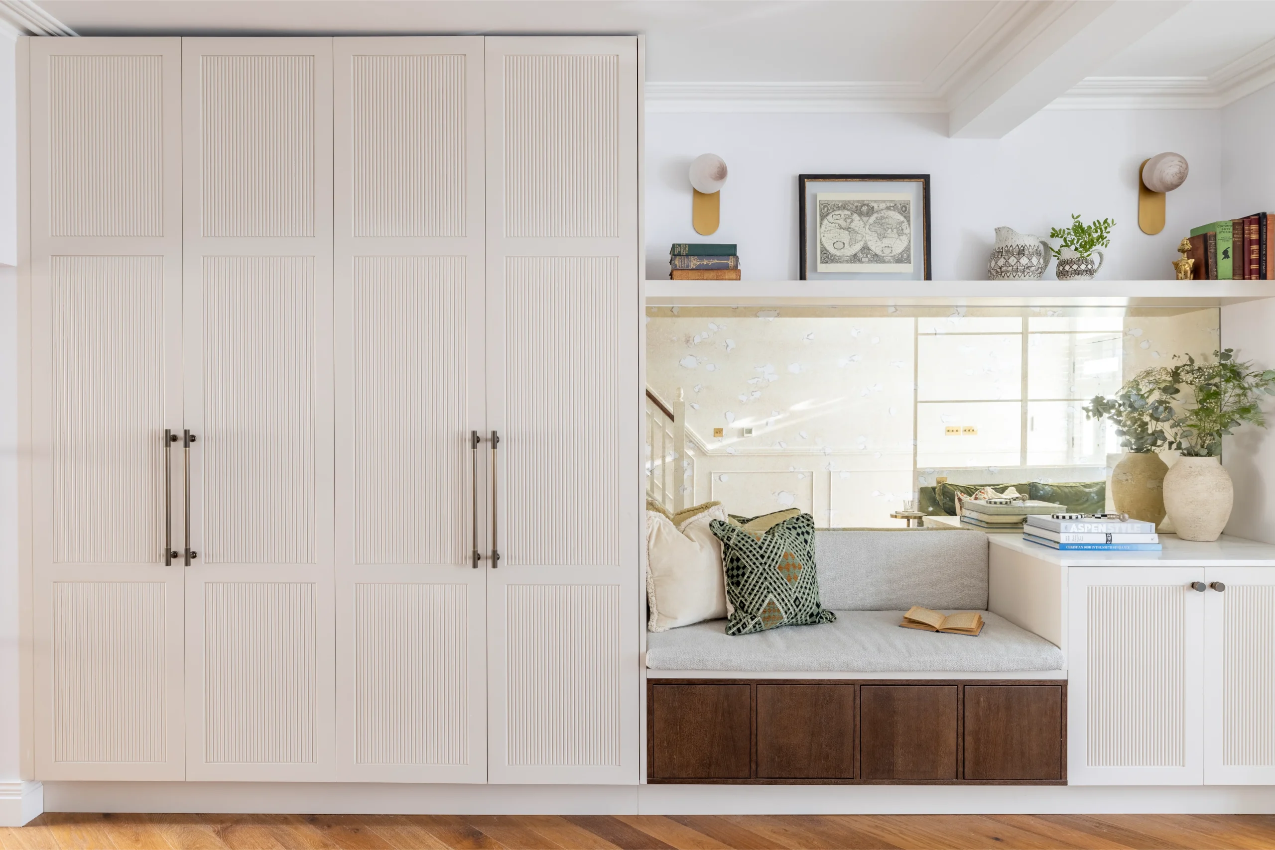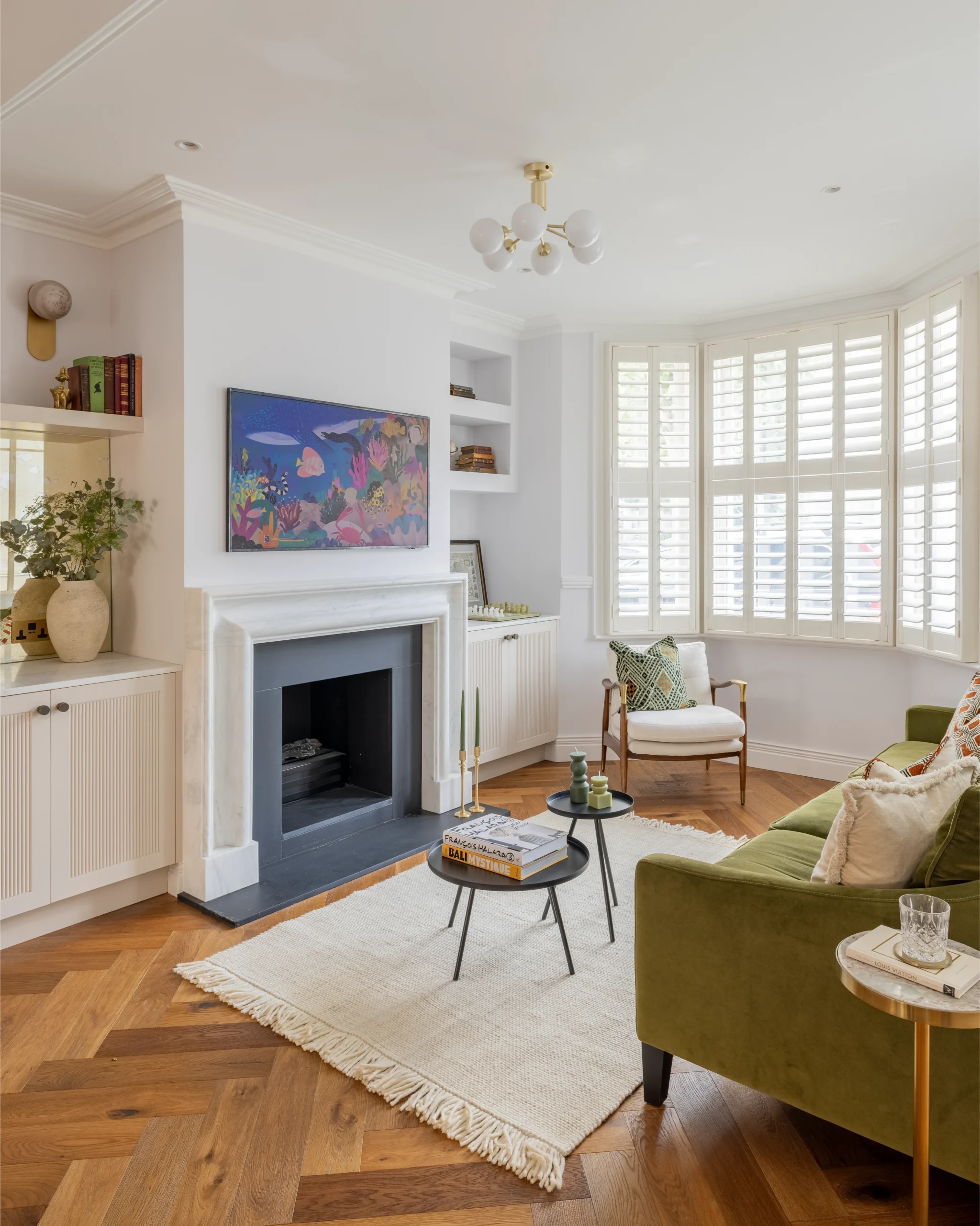 The kitchen was designed to be both a culinary and social hub, with bespoke joinery ensuring ample storage and a beautifully curated aesthetic. Throughout the house, original period features were carefully restored, complementing the modern upgrades. The replacement of all windows enhanced energy efficiency while maintaining the home’s traditional façade. Every design element, from material selection to FF&E curation, was carefully considered to create a refined yet highly functional family home, perfect for both everyday living and entertaining.