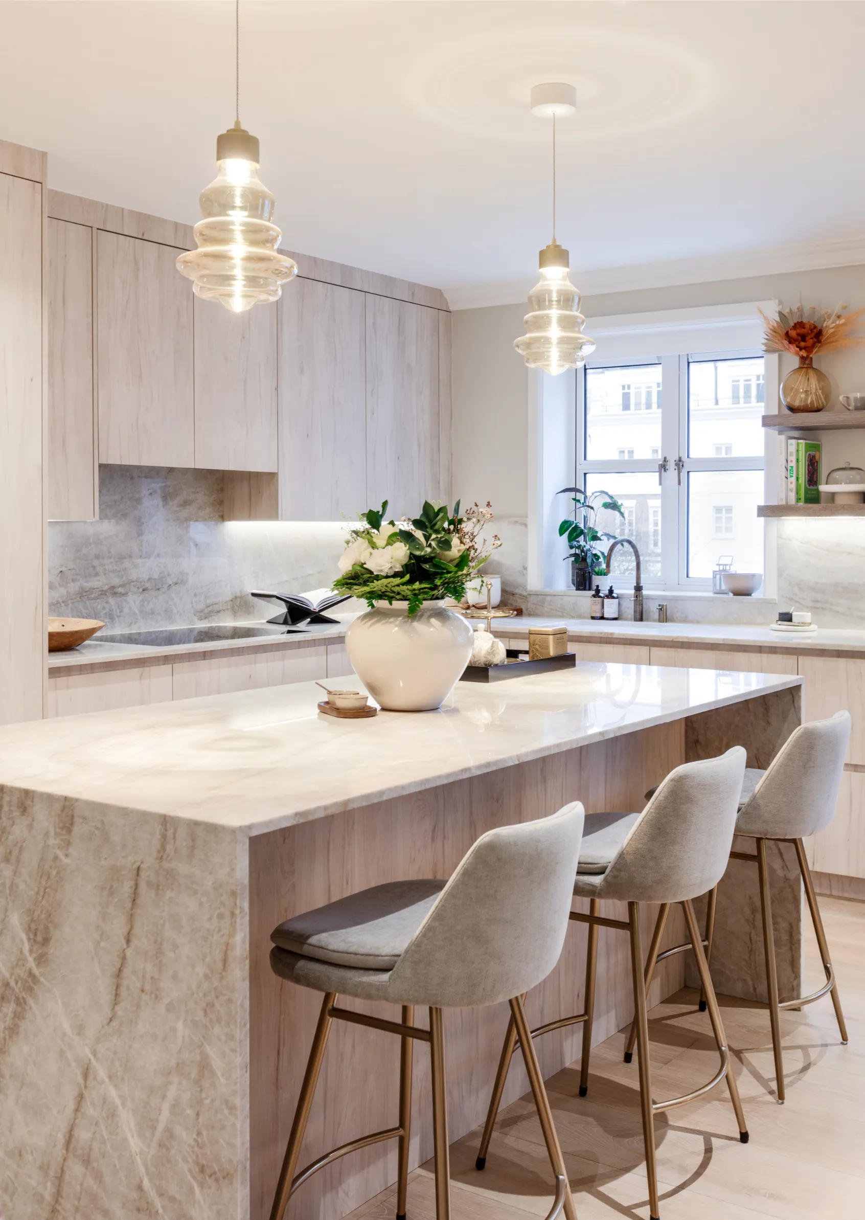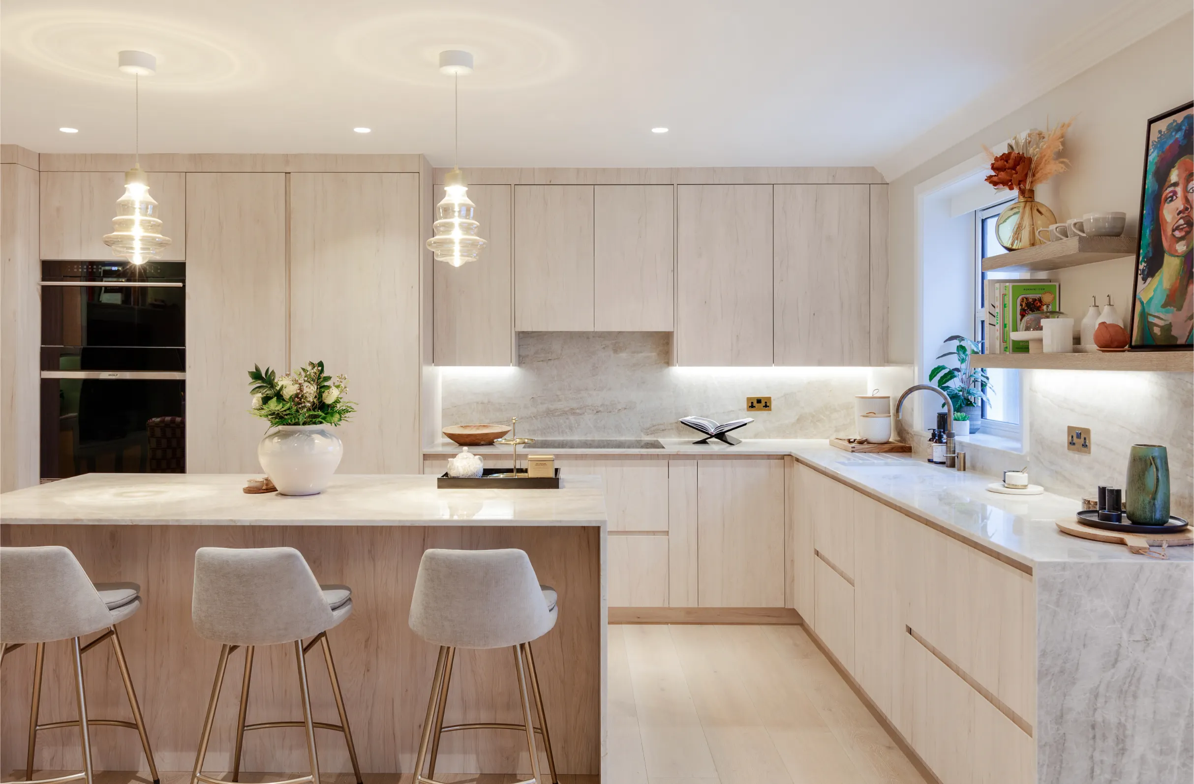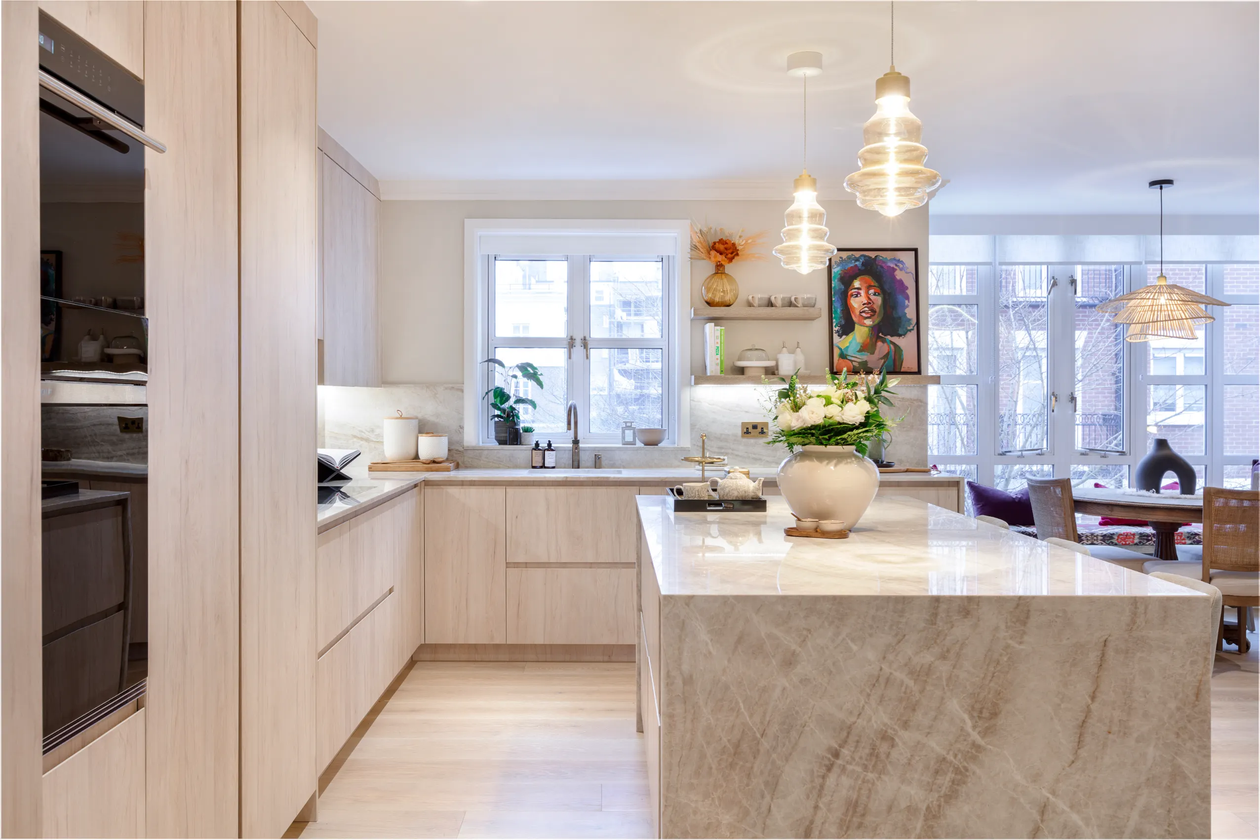 A key feature of the renovation was the introduction of indirect lighting concealed within the coving, creating the illusion of higher ceilings and adding a sophisticated, ambient glow. The interior design was influenced by the owner’s Caribbean heritage, with warm, inviting tones and natural textures creating a welcoming retreat from city life. Every detail was considered to ensure the home was both stylish and practical, offering a refined sanctuary in the heart of Prime Central London.
